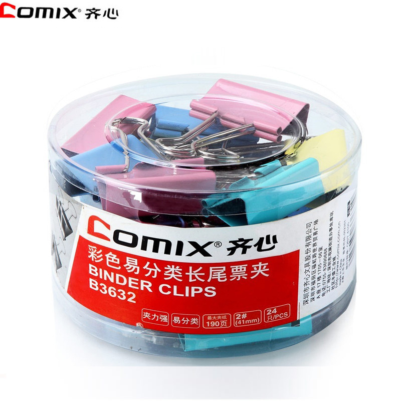 齐心 B3632 彩色长尾票夹 41mm 24只/筒
