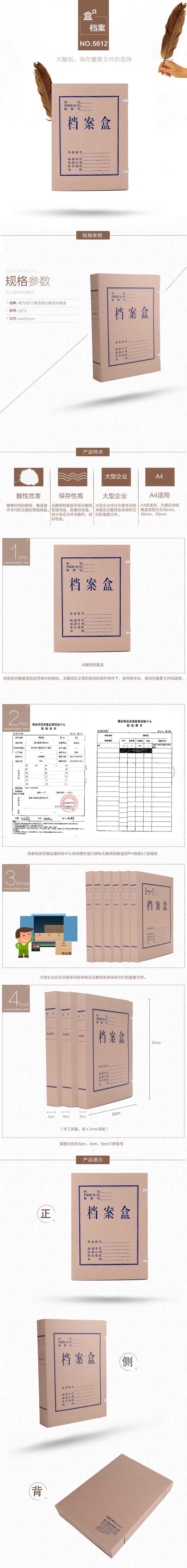 得力 5612_340g无酸对裱牛皮纸档案盒 50mm 黄色 10个/包