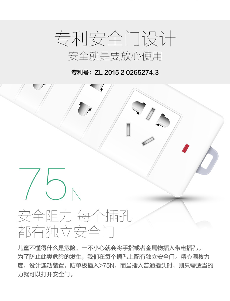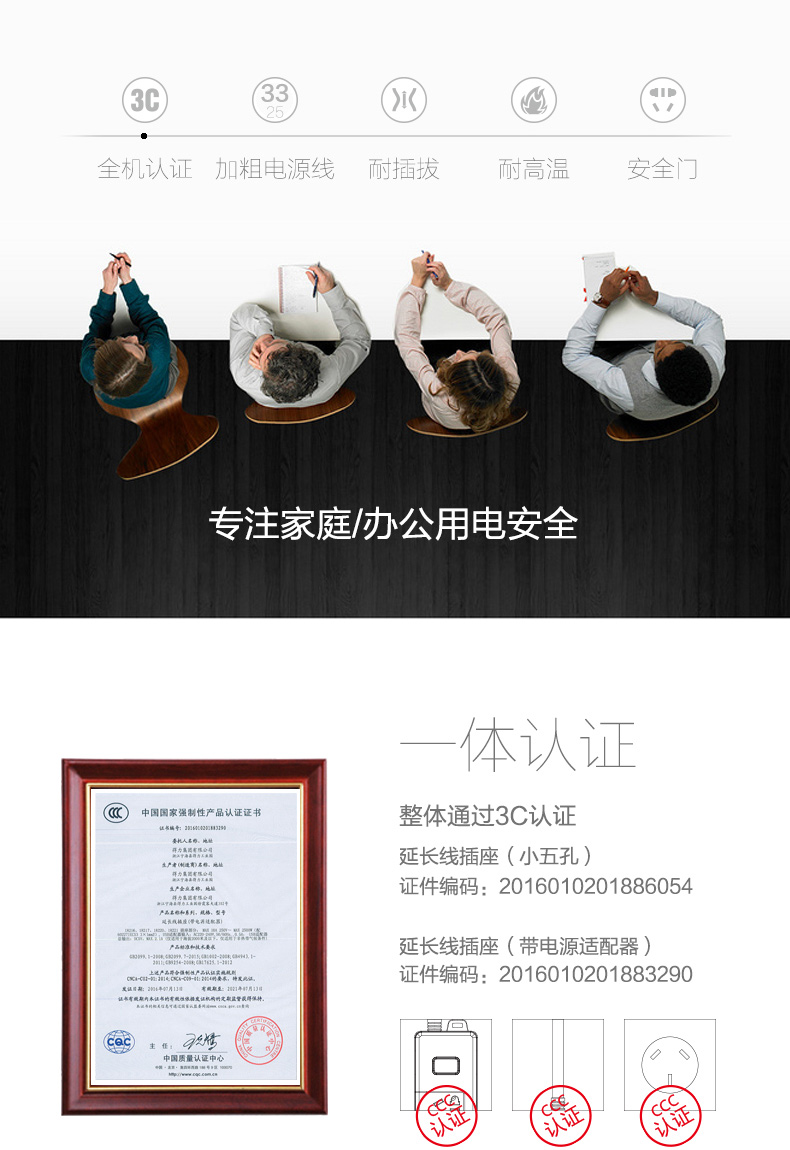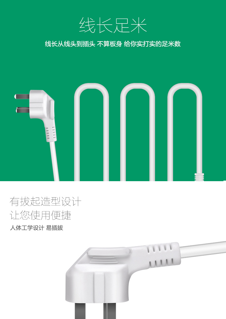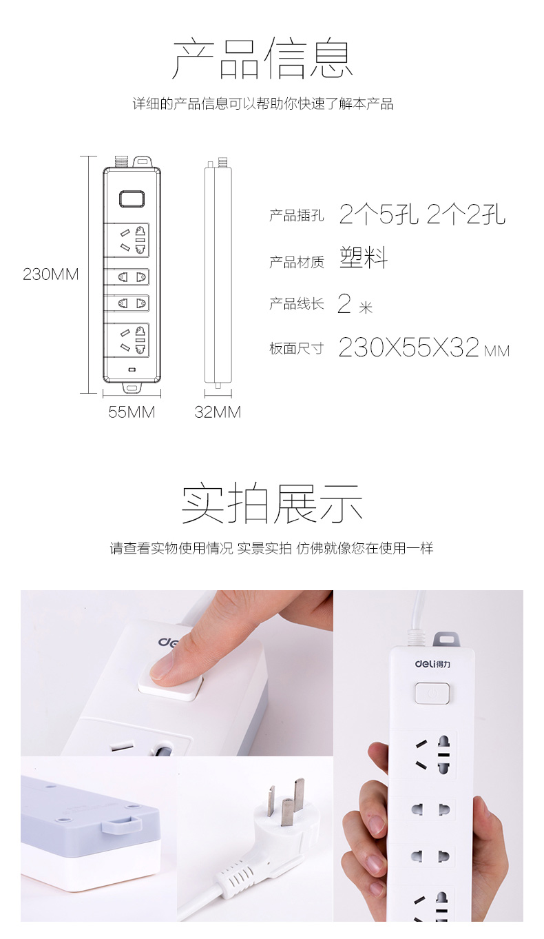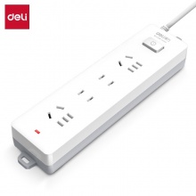 得力 18251 单控四联接线板插座 2米 白色