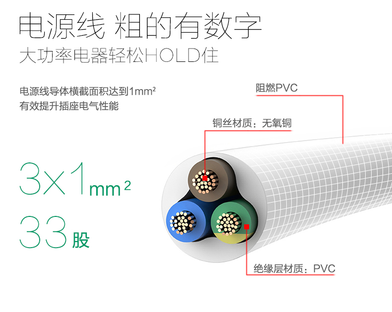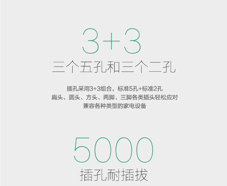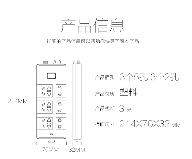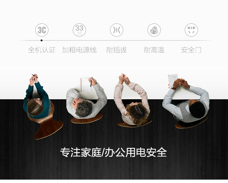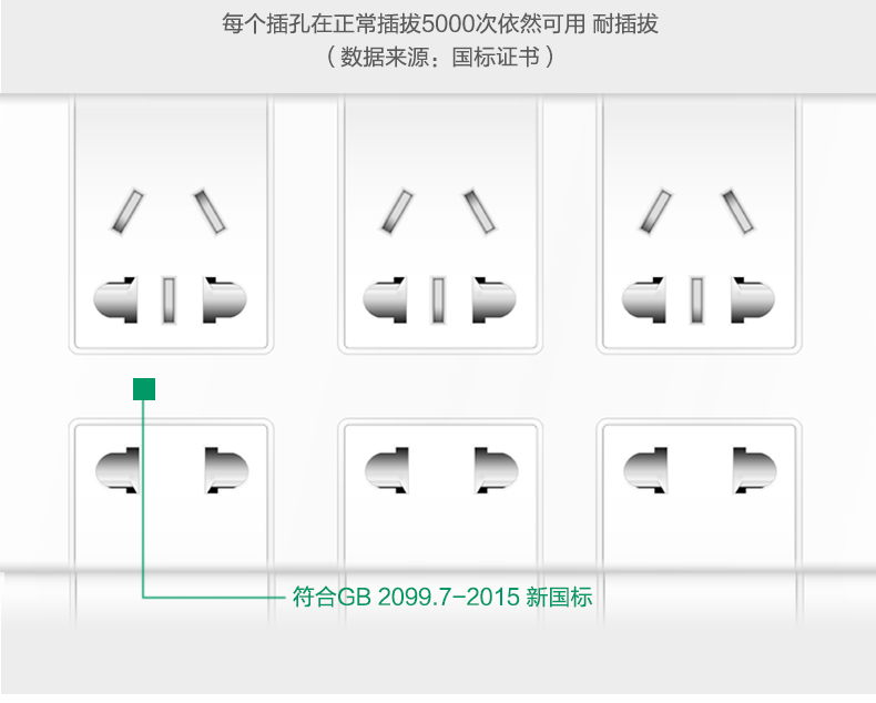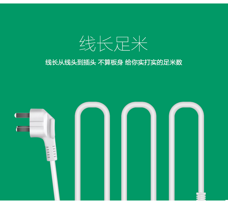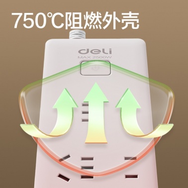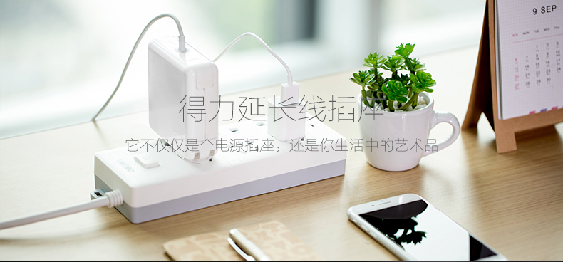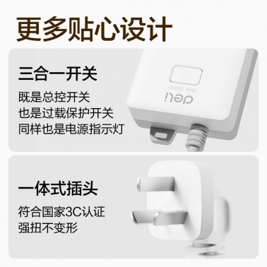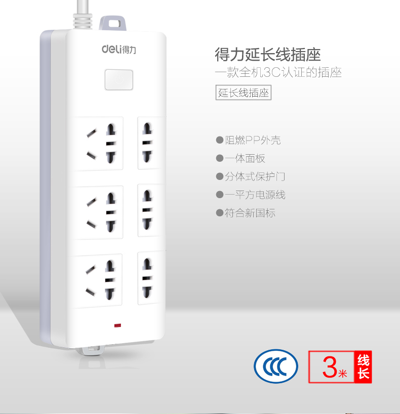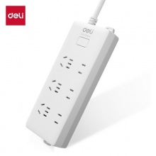 得力 18256 单控六联接线板插座 3米 白色