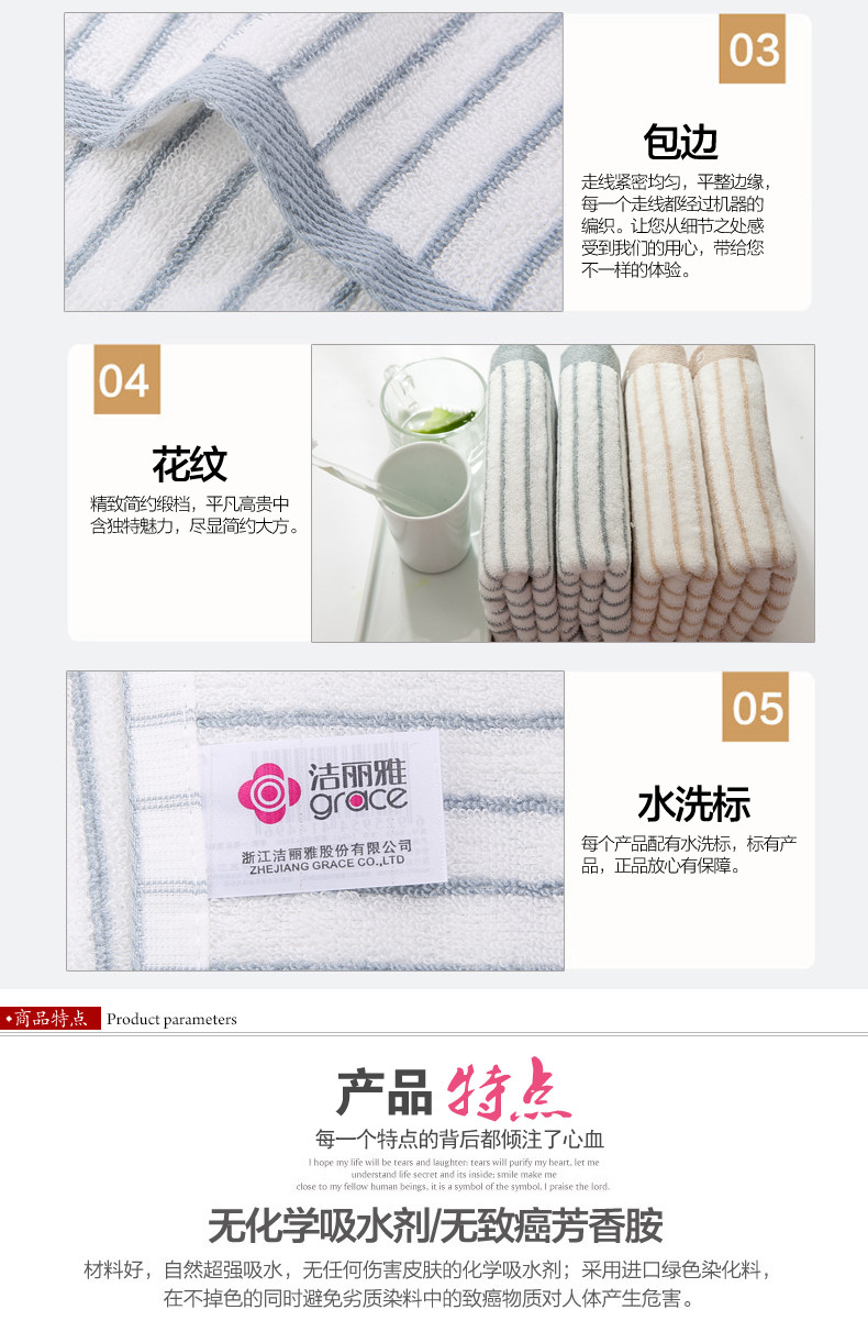 洁丽雅 6450 纯棉毛巾 72*34cm 棕色