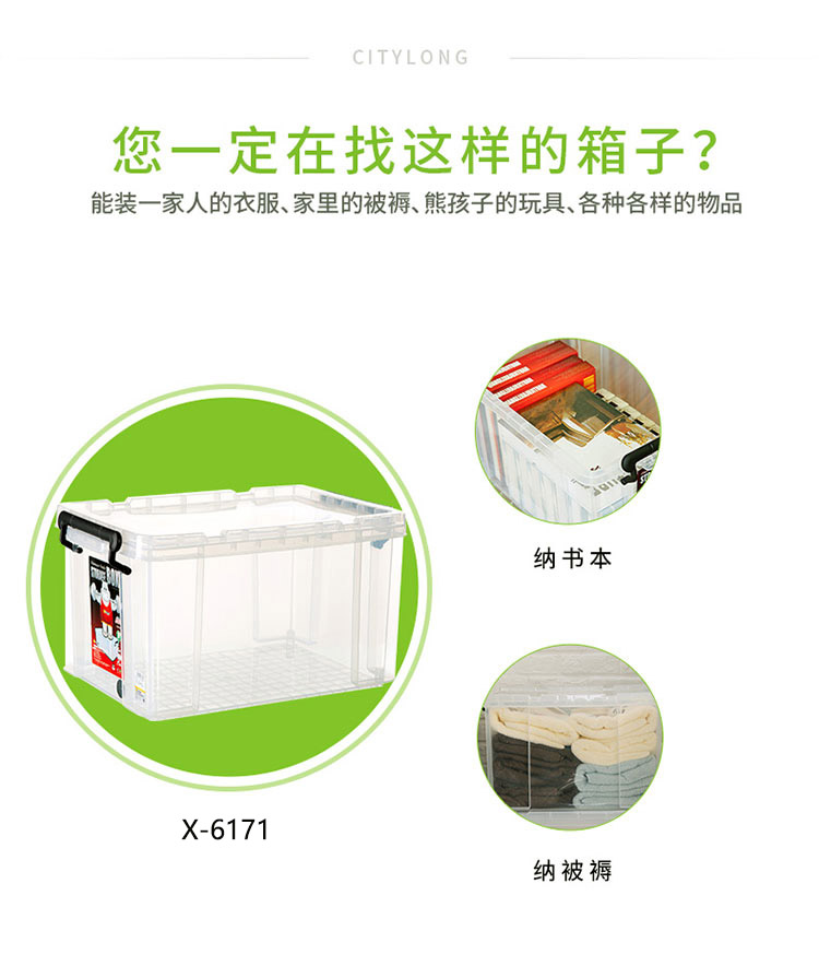 禧天龙 X-6171 塑料收纳整理箱 720*492*384mm 透明 96L