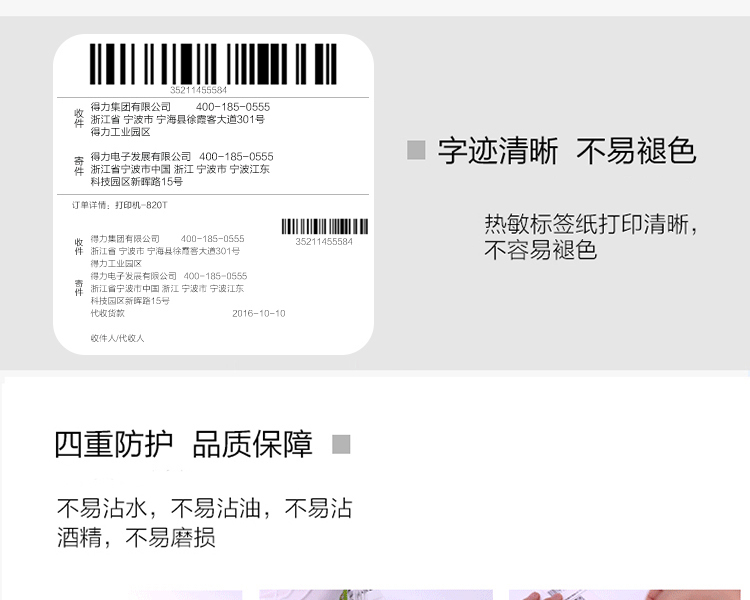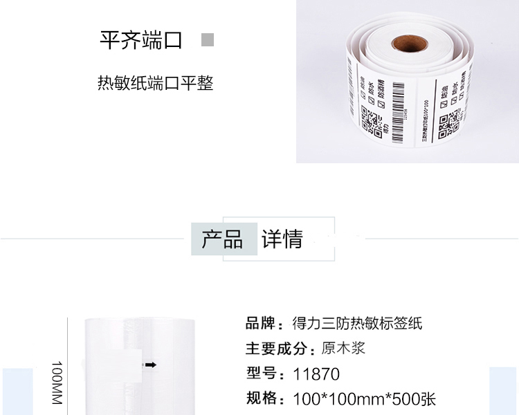 得力 11870 三防热敏标签纸 100*100mm 白色 500张/卷