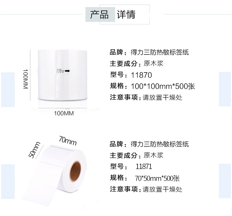 得力 11871 莱茵河长效三防热敏标签纸 70*50mm 白色 500张/卷