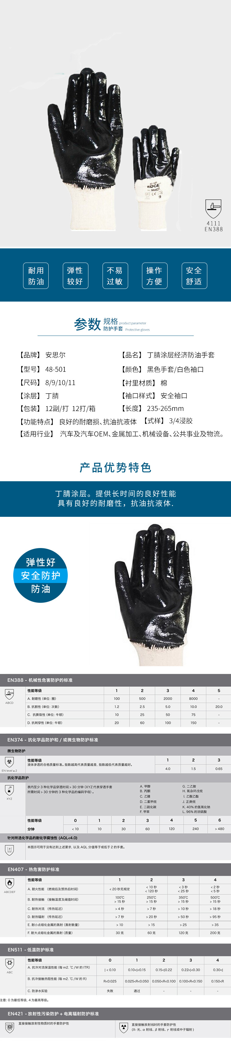 安思尔/ANSELL 48-501 丁腈橡胶涂层套 9码 12付/打