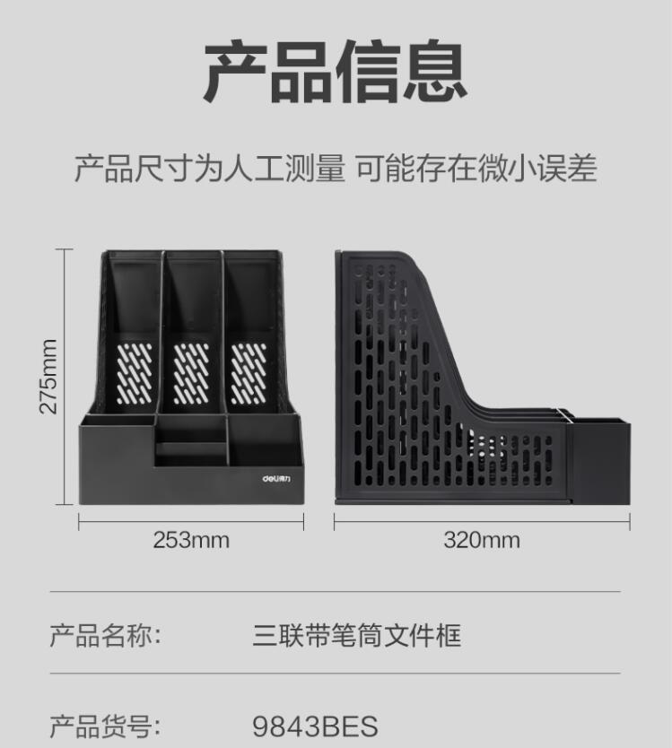 得力 9843BES 三联文件框 黑色