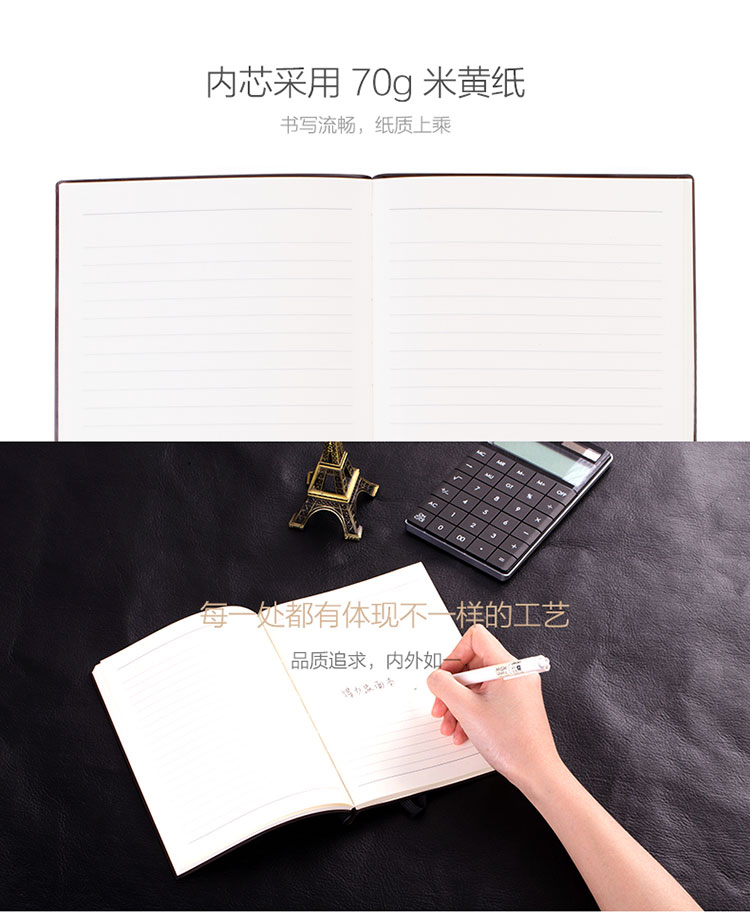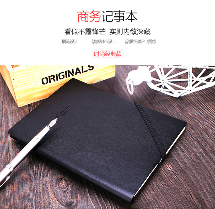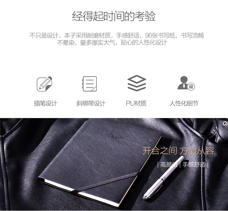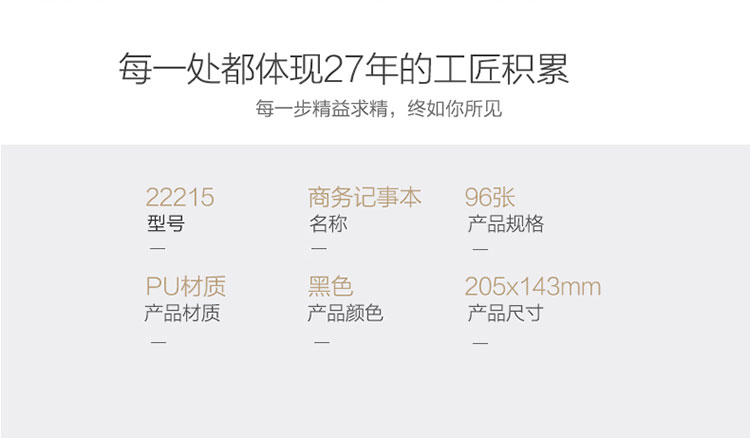 得力 22215 商务插笔皮面本 25K 曜石黑 96张