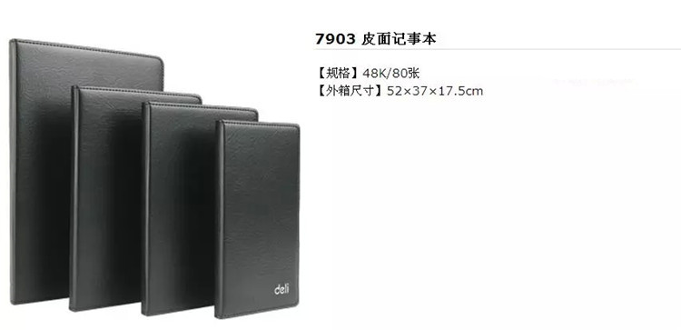 商品名称:得力 7903 皮面笔记本 48K 黑色 80张