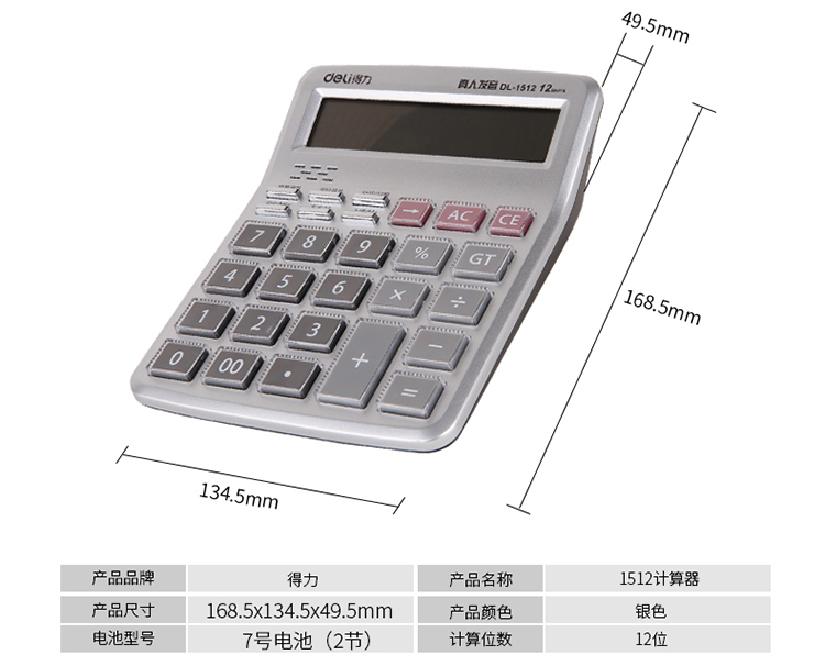 得力 1512 语音计算器 12位 银色