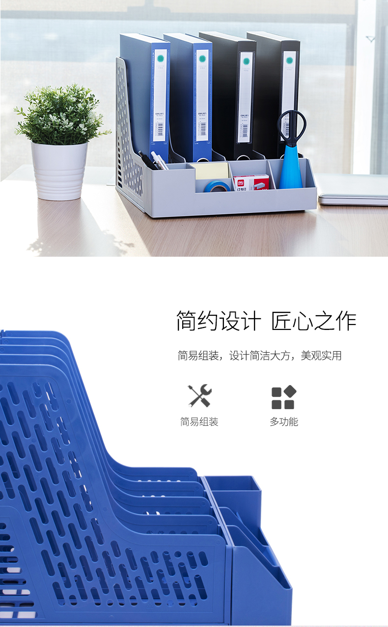 得力 78981 四联文件框带笔筒 黑色