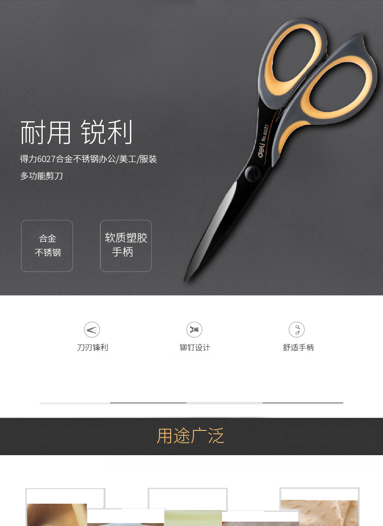 得力 6027 合金不锈钢剪刀 175mm 黑色