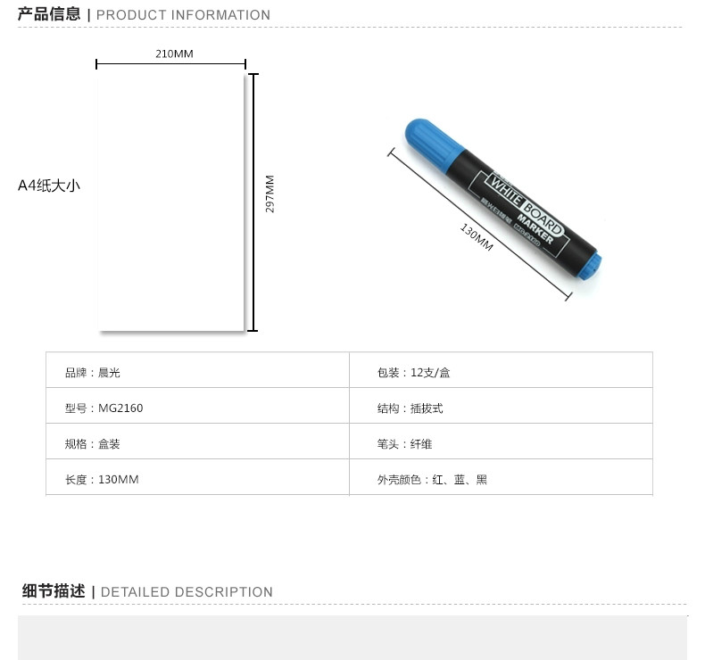 晨光 MG-2160 易擦型白板笔 蓝色 12支/盒