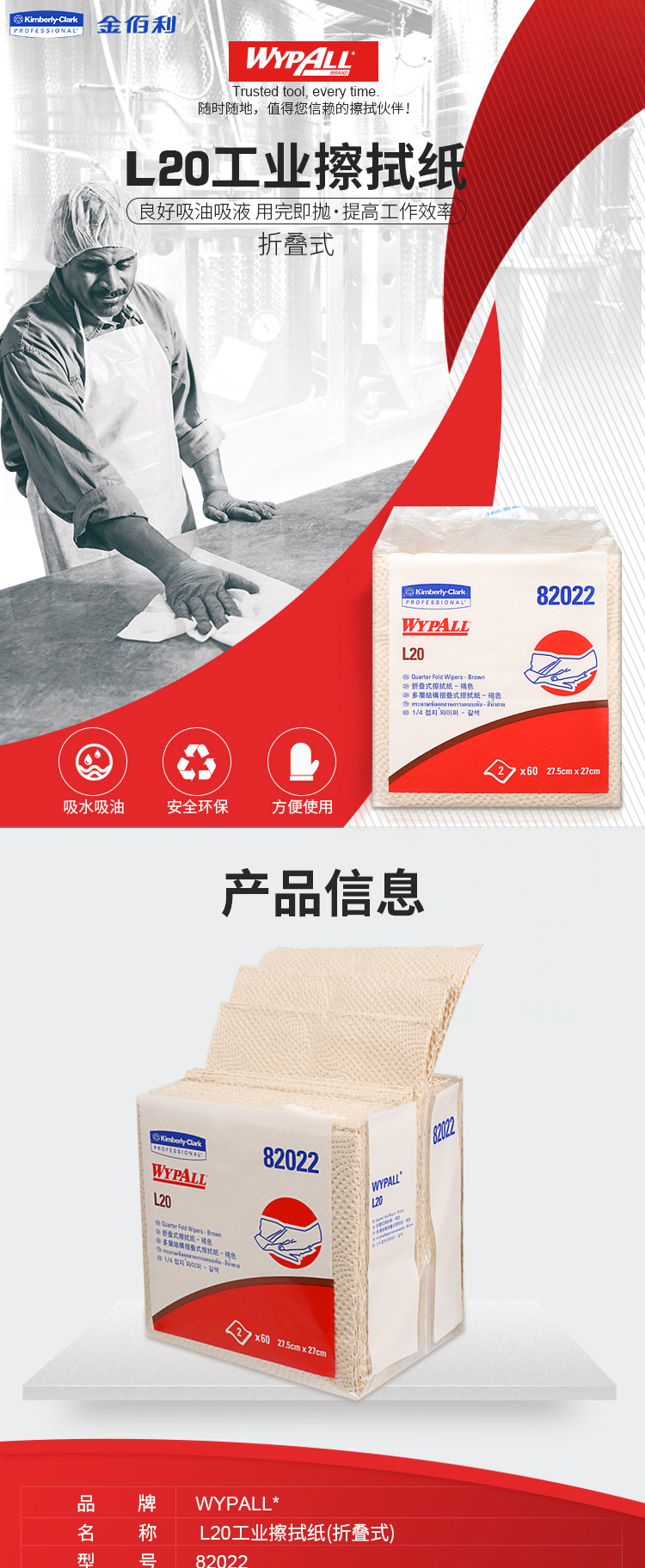 金佰利 82022 劲拭L20折叠式双层擦拭纸 60张/包 24包/箱