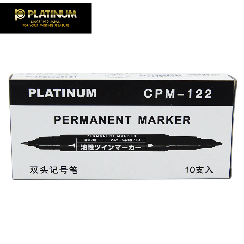 白金 CPM-122 小双头记号笔 黑色 10支/盒