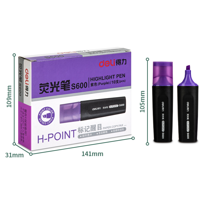 得力 S731 单头细杆荧光笔 蓝色 12支/盒