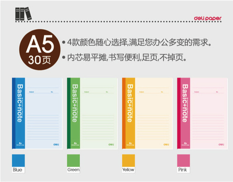 商品名称:得力 7650 无线装订本 A5 混色 30张
